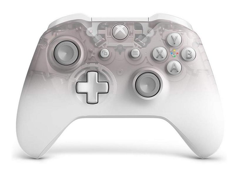 Com pintura branca e visual semi-translúcido. Como todos os controles Xbox, o Phantom White é compatível com todos os consoles da linha Xbox, inclui entrada de fone 3.5mm e tecnologia Bluetooh para Windows 10 e Samsung Gear VR.